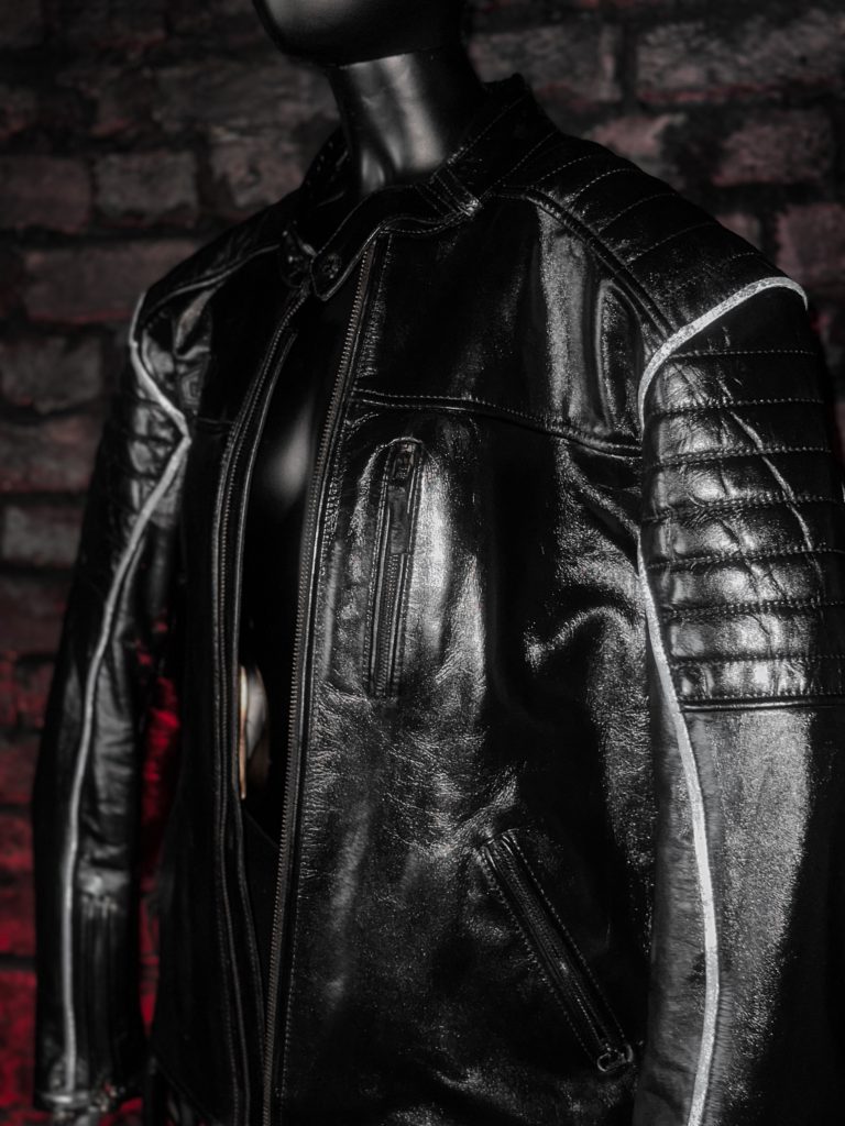 The process involved multiple stages – from deglazing and preparing the leather, to layering coats of reflective pigment, and finally sealing the entire jacket for durability.